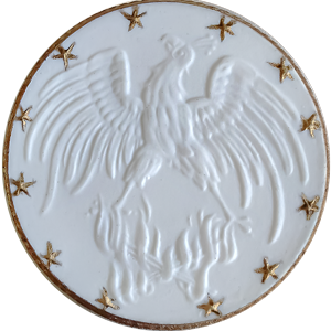 Der Phoenix erscheint erstmalig auf einer Keramikmedaille (Weihnachtsspiel) von 1920. Hier ist stark der klassische Eindruck erkennbar, der sich im Einzeldetail (Federkleid) erkennen lässt.