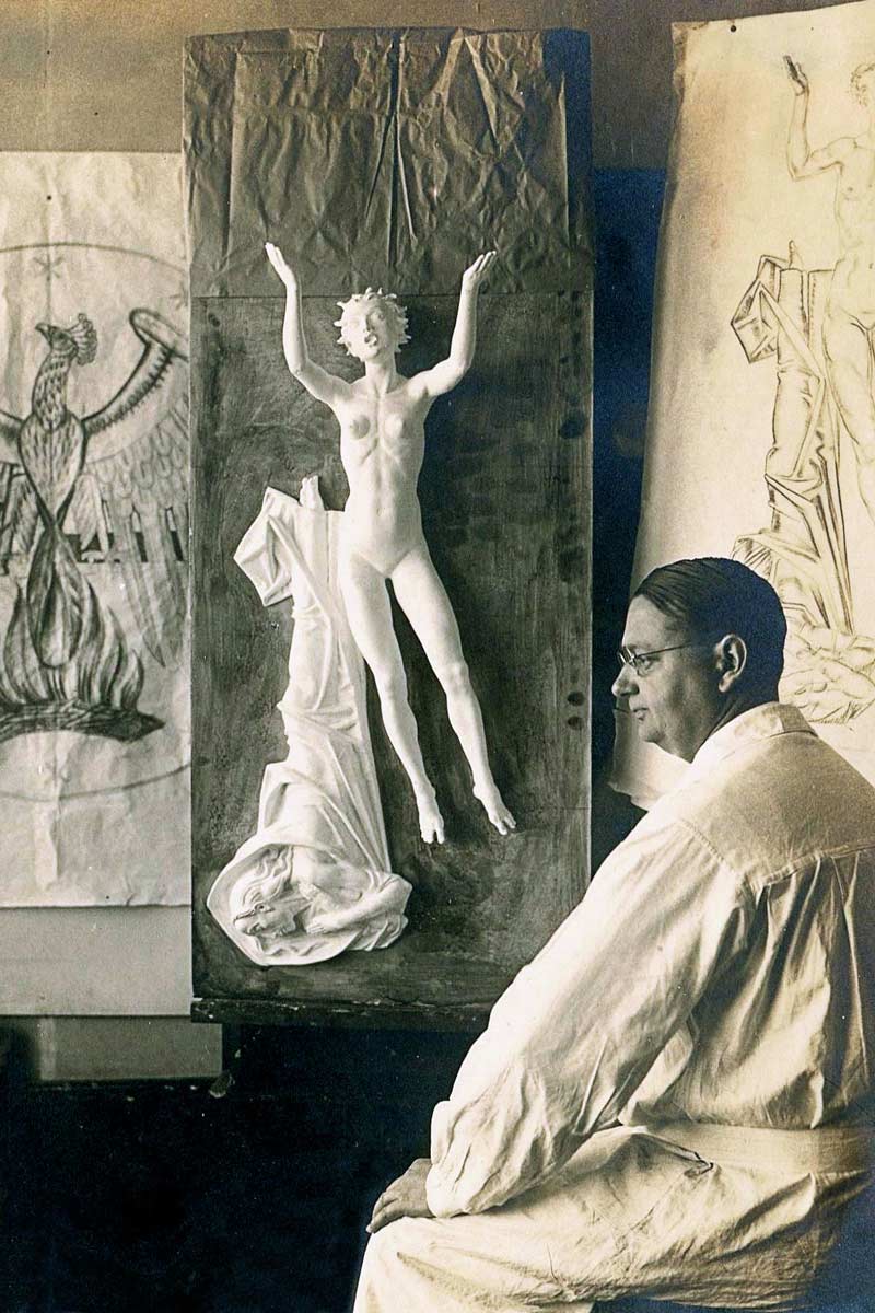 Der klarste Stil an Gleichmäßigkeit wurde dem Feuervogelrelief (Entwurf 1928) am Krematorium zuteil. Trotz der Betonung der Symmetrien wurden die anatomischen Besonderheiten der Motive sehr genau beachtet. Auf den keramischen Entwürfen ist trotz der abstrahierten Pfauendarstellung die anatomische Ordnung der Hühnervögel klar in der Körperform und an den Füßen ablesbar. Der körnerpickende Schnabel rundet das charakteristische Bild ab. Die Verbindung von Naturstudien und deren Umsetzung in der Kunst zeugen von der Genialität des Gestalters.
